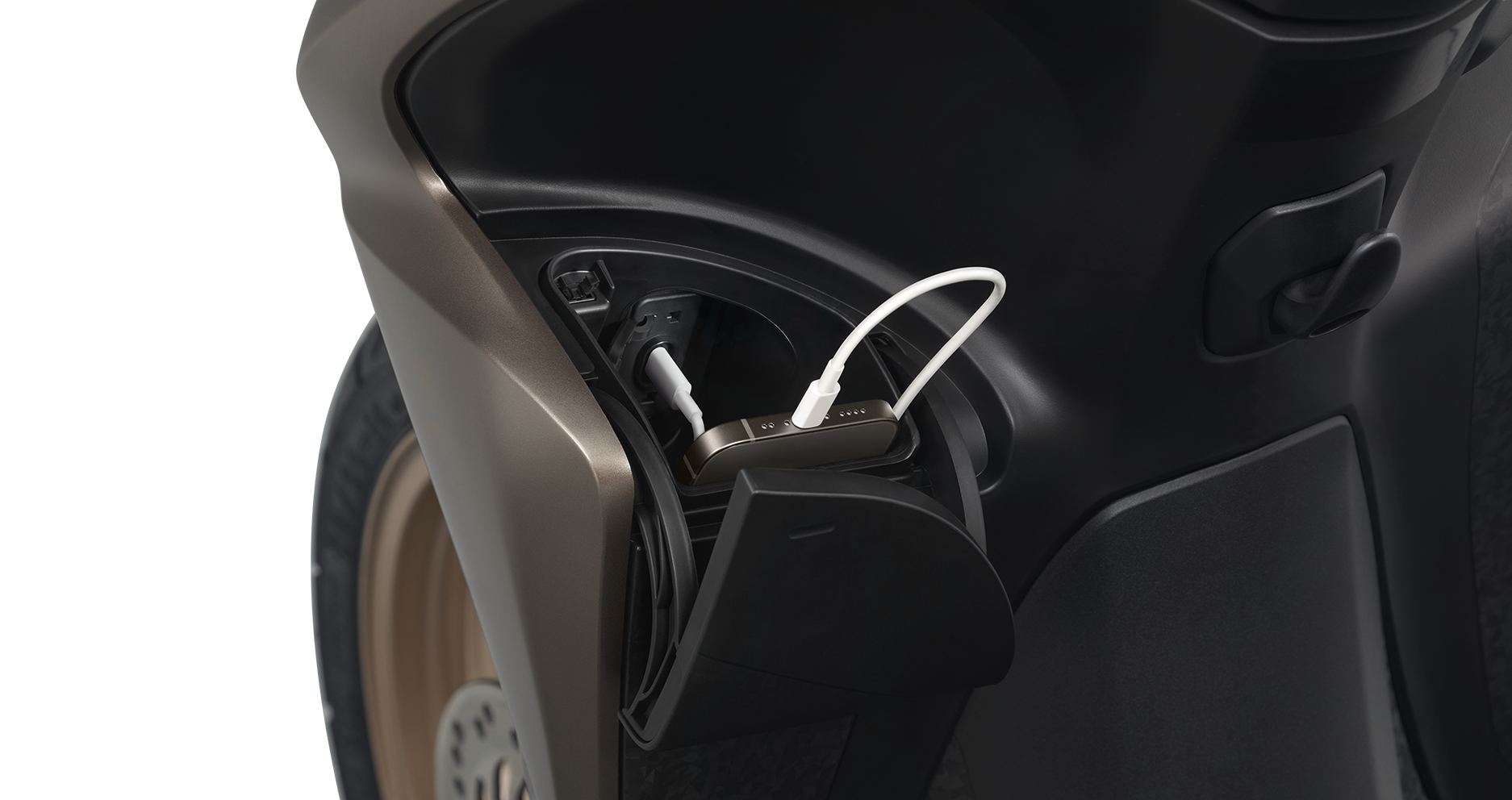 Hộc đựng đồ phía trước có nắp đậy, kích thước rộng rãi và có khả năng chứa nhiều vật dụng cá nhân và tích hợp cổng sạc USB loại C tiện dụng.